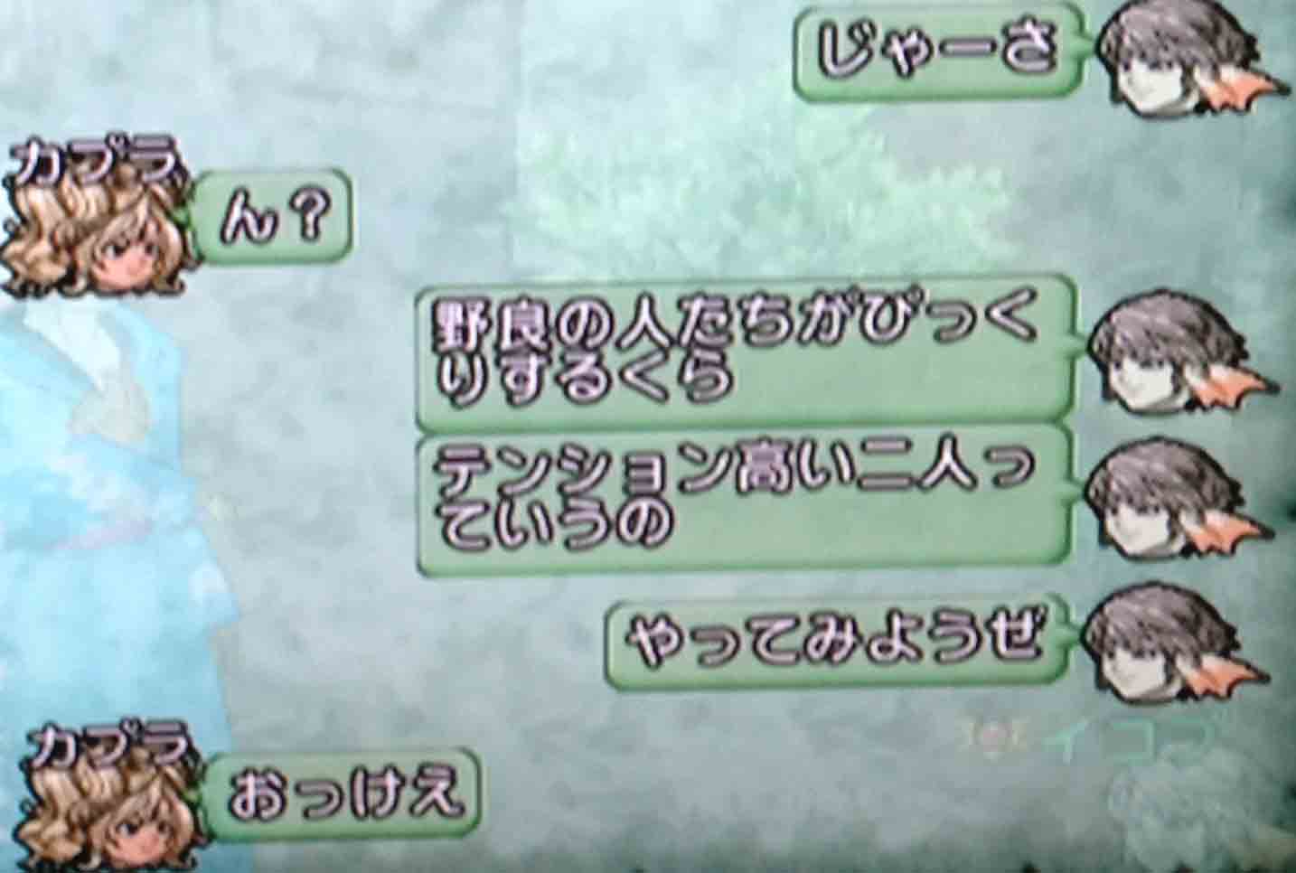 その後その野良の人に「w」を使わせたら勝利ということになりまして、よーし笑わせるぞなにを言おう何を言おうと思っているうちにカプラさんが普通に何かいったら