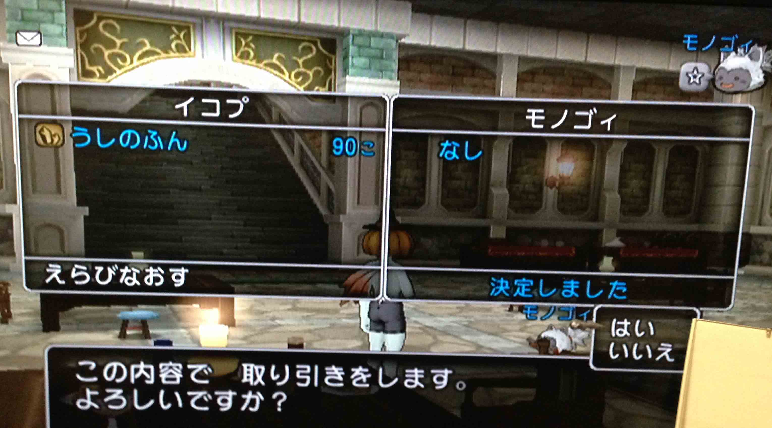 前回の記事を見てもらえばわかるように、イベントはとても複雑かつ巧妙に企画された戦略性の高いものなので、簡単に内容をまとめることはとても難しいのですが、そこをなんとか簡単にまとめると「イコプからうしのふんを貰う」ということになります。