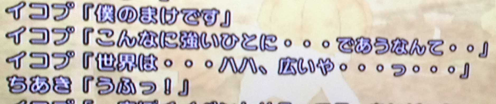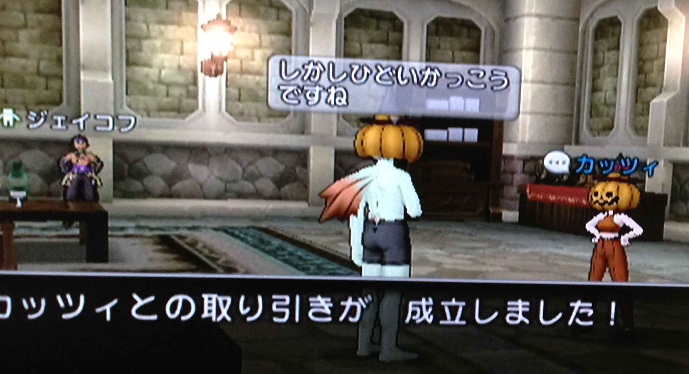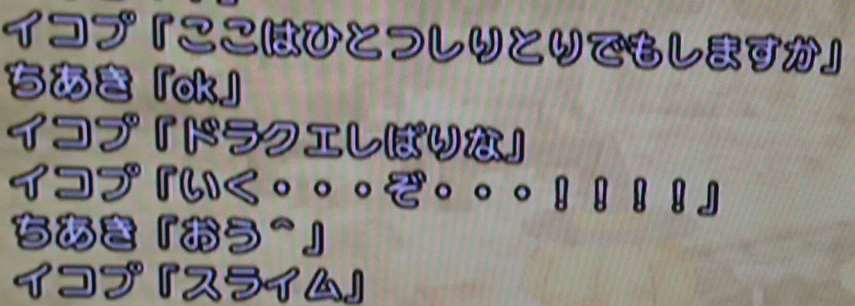 この格好で出て行くの恥ずかしいとか言っていたので、ルーラを繰り返しながら行くと画面から外れて気づかれにくいよ、とアドバイスしたところルーラ!どかん!ルーラ!どかん!と大騒ぎしながら去っていきました。