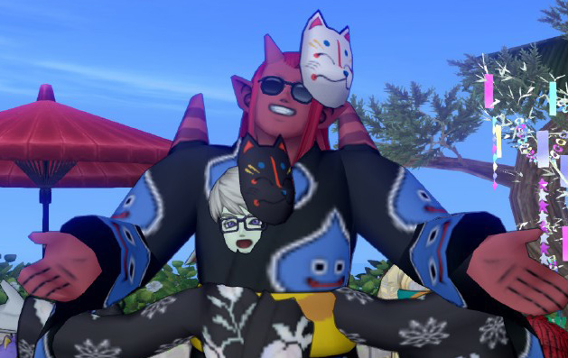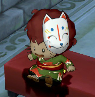私です。6万ゴールドかけて準備したこの浴衣とお面。