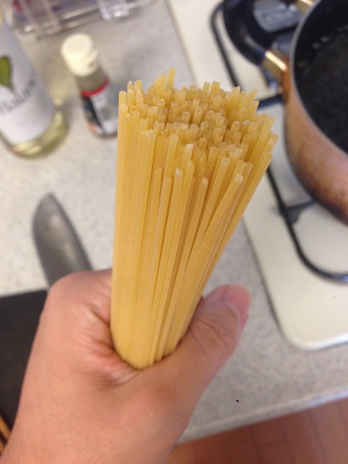 そして素早くお湯を張った鍋でパスタをゆでます。