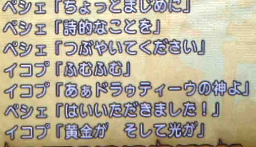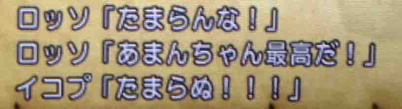 くぃにあまん日記とは、数あるドラクエブログの中でも私の中で1、2を争う史上最強の癒し系ブログです。作者のペシェさんとあまんちゃんが織りなす4コマ漫画風の日記が、シュールかつほのぼの時々血なまぐさい感じでマジで中毒もの。俺の中でえまさんとペシェさんはドラクエ内でのアイドル的存在と位置づけられていました。そんな方に御会いできるどころかまさか出演と!!?!?ロッソ神!!!!!ロッソ神よお!!!