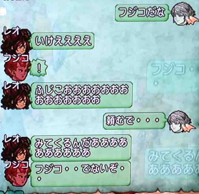 ぜいぜい肩を揺らしながら黄色文字になったフジコとレオが出てきました。