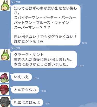 しかし時間は22時13分。指定の24時までにジュウスがこのメッセージに気づいてくれるだろうか…仕事が遅いジュウス氏が、睡魔に極めて弱いイコプ氏の眠気の訪れよりも速くログインできるか。まさにレンジャークエ最大の難所を迎えました。