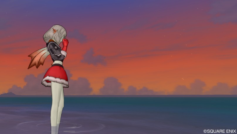戦いに疲れた日々。重い足鎧を脱ぎ捨て、冷たい水に足を浸ける。気づくと、そこにはとても綺麗な夕闇が広がっていた。はっと息をのみ、少しの間、手を合わせた。