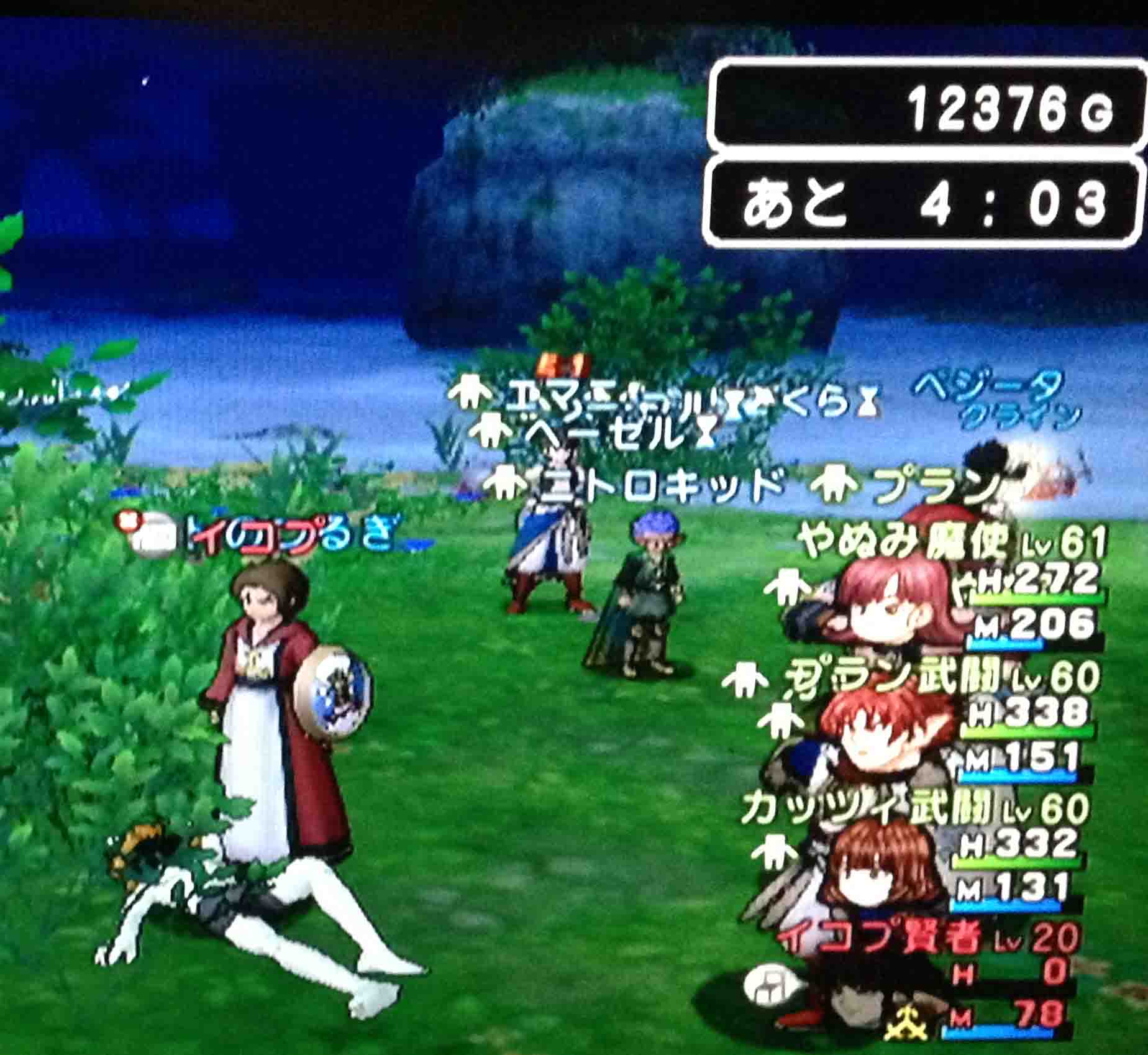 「あちゃー死んだわー戻るかーってぉぉおっぉおぉぉい!!12376ゴールド持ってるヨォォォオオォオォォオイ!!」とリアルで絶叫。素早く2アカの電源を入れるも5分でここまで来られる望みは薄く、半ば諦めかけたそのとき、写真の方がザオラルくれました。アストルティアー!!絆のゲームー!!!