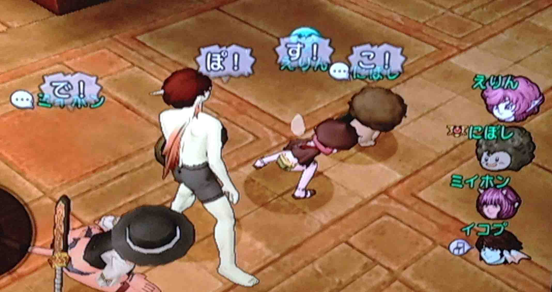 コスポが偶然男4人、女4人でログインしたので、男女勝負で4vs4で迷宮早クリア勝負した。