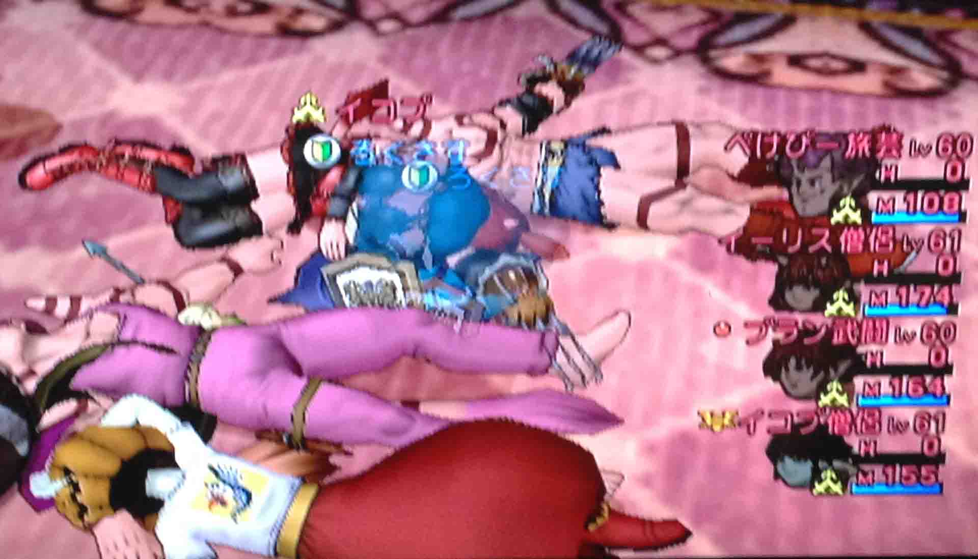 部屋の前で死体で途方にくれる4人。きちんとした装備の他の強ボス挑戦者達がいぶかしげにザオを唱えてくれた。