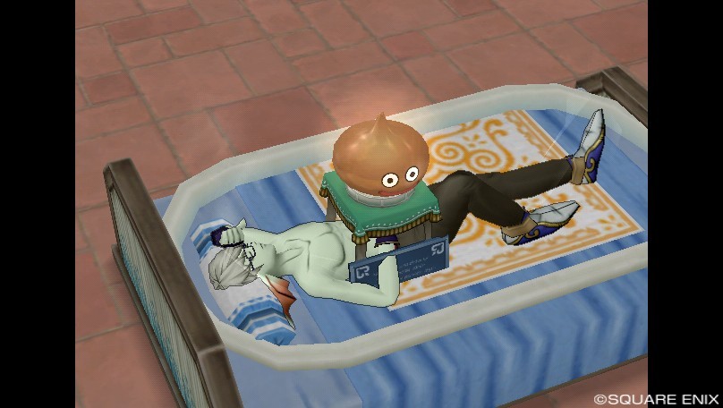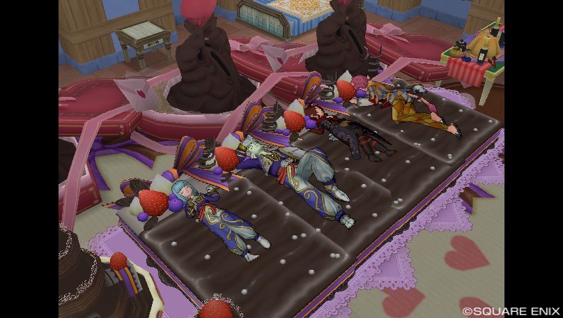 ということでもうダブルベッドどころかダブルダブルベッドみたいになってきました。チームのメンバーととりあえず寝てみました。これが噂のパジャマパーティか・・・一度やってみたかったんだドラクエって本当可能性は未知数だな。とかそんなことをしてる時にお客さんのあぶってかもさんやレナさんが来ていただけまして、なんか見てはいけないものを見てしまったみたいな空気になりました。