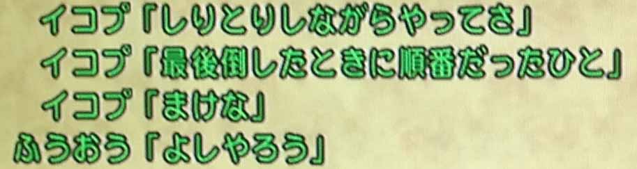 ふうおう➡むらぽん➡ポローニャ➡イコプ
