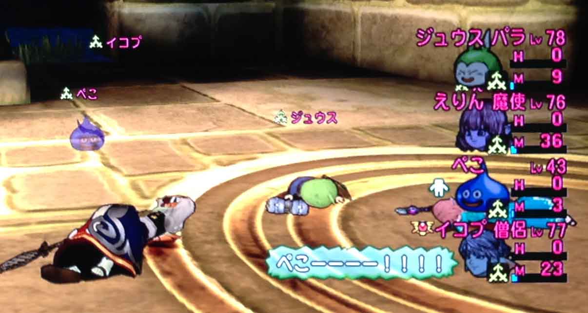 途中さすがに1−3はかわいそうということになりまして私ーぺこ/じゅうすーえりんの2on2の正しい構成になり、何とか進んで行きます。しかし圧倒的に時間がかかる。これもう間に合わない、ちょ、いっかい出てやり直そう?ということになりまして。