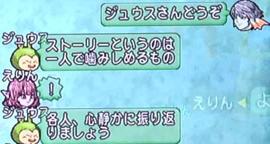 ストーリーを進めるにあたってはやはり感情移入が必須になるます。その為にはここまでのストーリーの流れを復習しておくことが必要でしょう。ストーリーを読まないスタイルのイコプ氏とストーリーを説明するのが面倒なえりん氏がいるためここは副総裁ジュウス氏に全責任が嫁せられます。