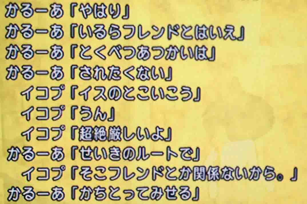 ログインしたところぺけぴーからテンション高いフレンドチャットが来たのでしょうがないなぁと思ってのったらマジでキレられたところ
