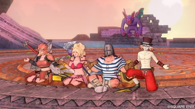 横一列に並ぶのは変わりませんが、少し斜めに角度をつけ、またポーズにも統一性が出てきました。戦闘中の装備は仕方がありませんが、ボス前の装備は自由ですからね。みんな自由な服装になっていてボス前の緊張感とカジュアルな服装の対比が良い味を出していますね。ま、このまま戦いましたけど。