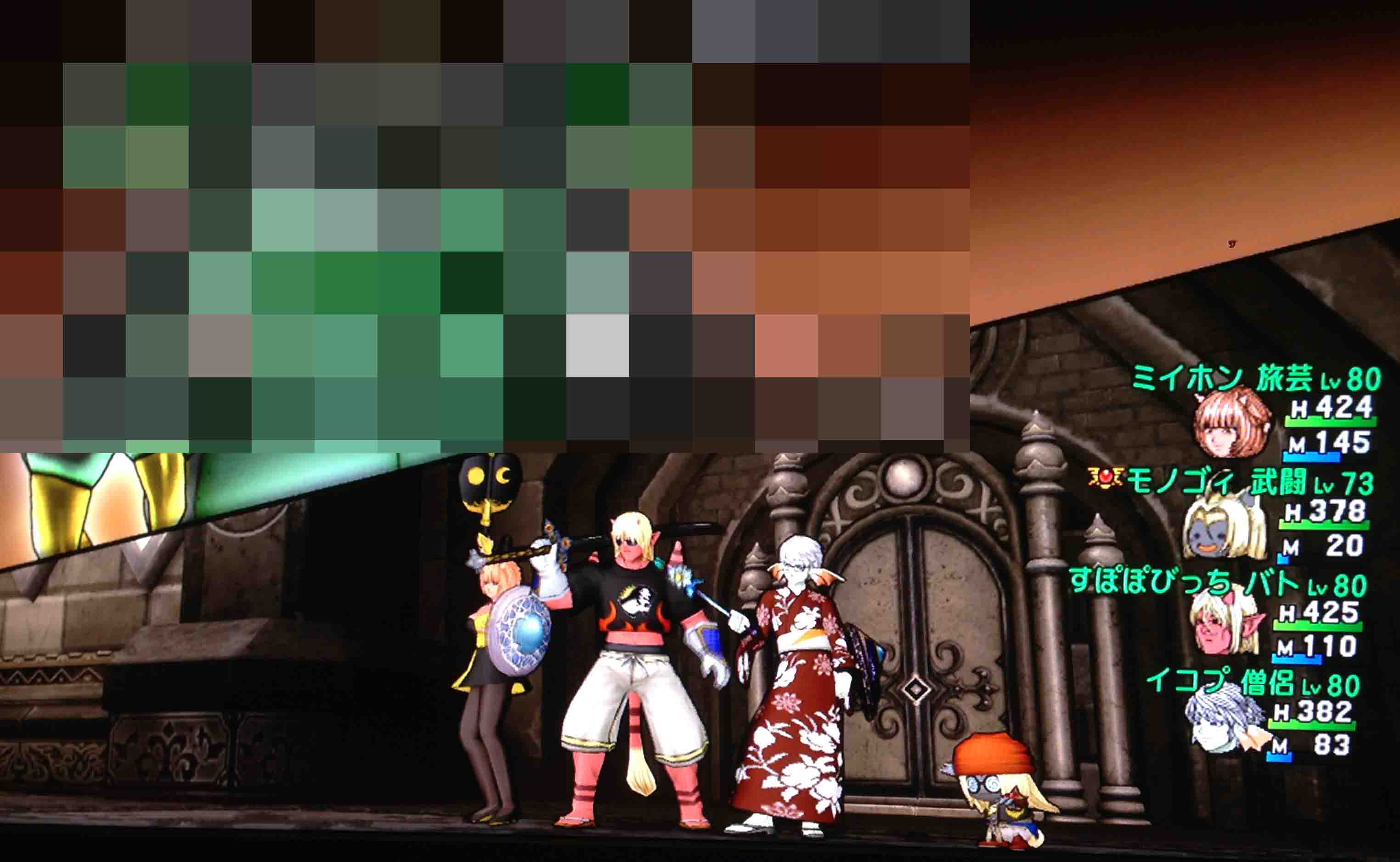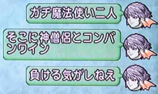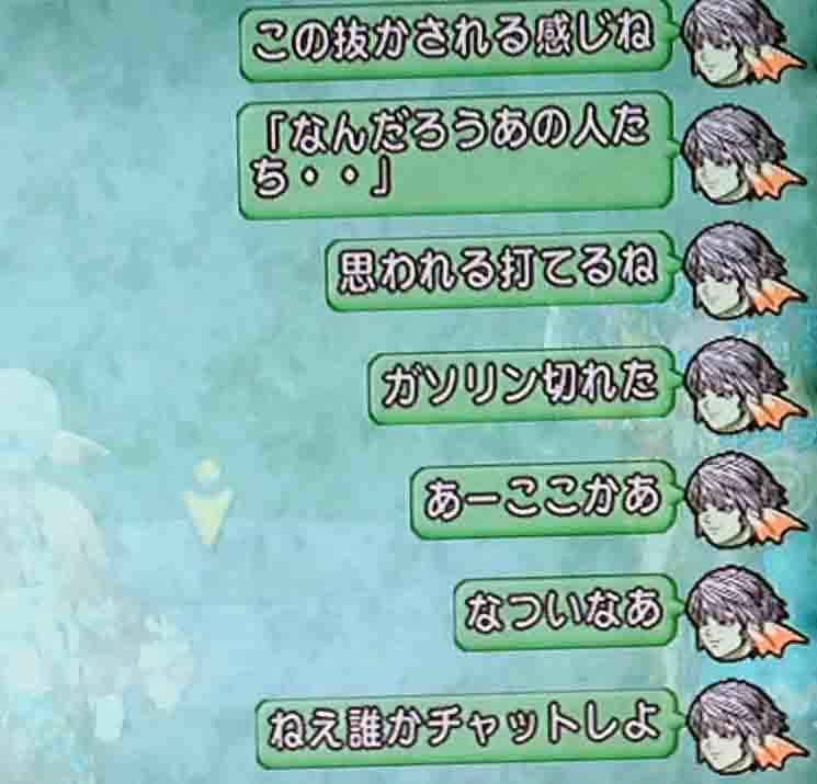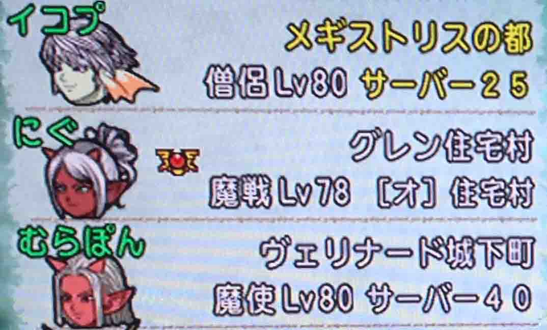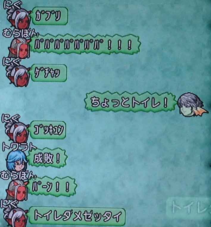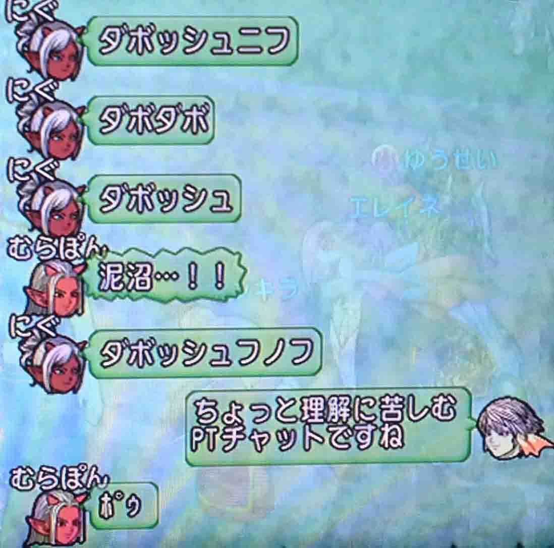 分かるはずですドラクエであれだけ絡んできた男です。画面上のチャット、モーションは俺達の脳裏に染み付いています、わかるはずだ、俺達は3Pだから、、、、と思ったのですが全然わからないのでぺけぴーと「どれ?誰?」と四方八方探しまわります。
