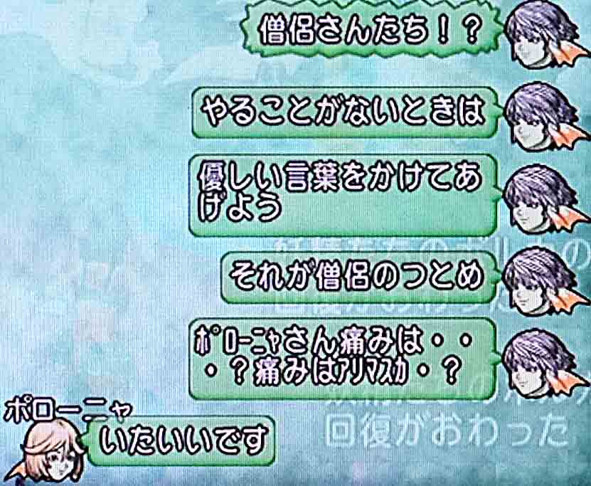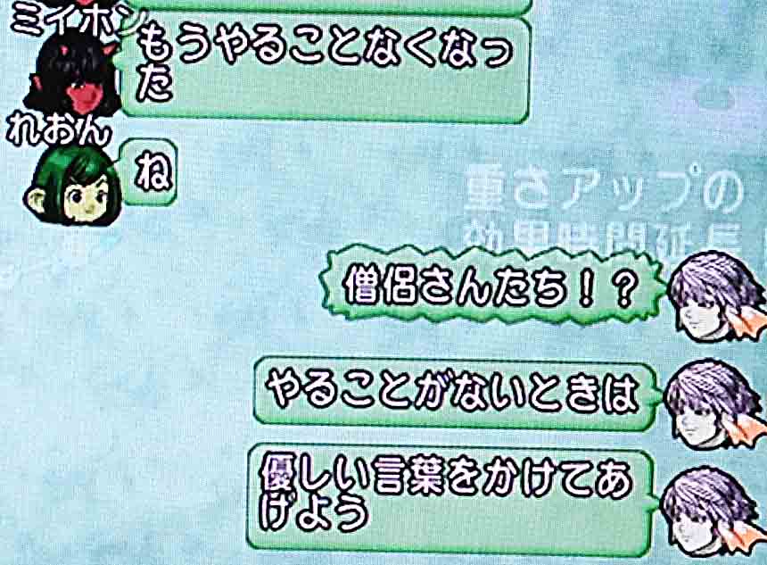 今回のパーティではミイホン、れおん、私の3人が僧侶だったのですが、いい感じで前衛がキャンセルショットなどしてくれていますと比較的暇になった勢いでボーッとしてしまうわけです。これは今後の士気に高まりますので、きちんと暇そうな僧侶さんにも明確な仕事を与えてあげる必要があるのです。