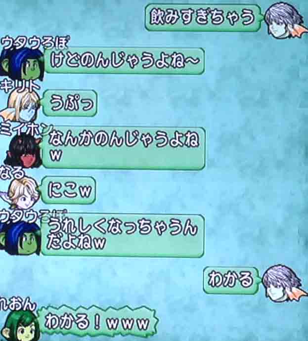 最近ドラクエは離れがちですけど、ラインでは繋がってる感じがしますし、またみんなで遊びに行く企画とかもやりたいと思っています。チームというより、家族みたいになってきてるのが凄いいなあと思ってるわけですよ。リーダーそう思ってるわけですよ。この仲間は一生続くんじゃないかなあー。
