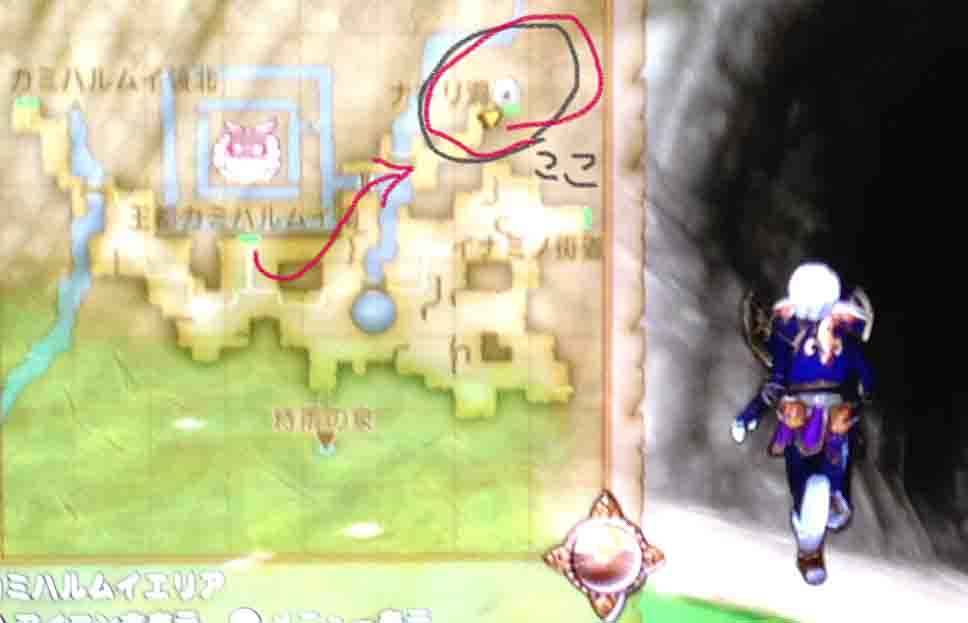 ナギリ洞はここです。画像めっさぼやけてますがまあ攻略サイトじゃないんでいいでしょうハッハー!カミハルムイ南から行きましょう!