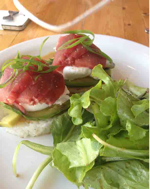 そして注文。私はマグロのベネディクト?マグロとアボガドとライスケーキで出来た料理を頼みました。えっパンケーキは?と思うでしょう?思うでしょう思うでしょうわかりますでもね実は私イコプは甘いものが苦手なのでそもそもパンケーキとかあまり食べられないのです。で、前情報でこのベネディクトが美味いという情報は入手していたのですよハァーハッハッハッハまさに英知極まるとはこのことと食べ始めると確かにこれ美味しかったです。醤油味みたいな味で。