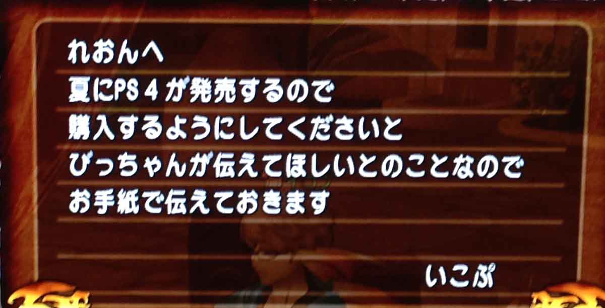 もうすぐプレステ4が発売になるけど妻のれおんが買ってくれるかなぁと心配とのこと。
