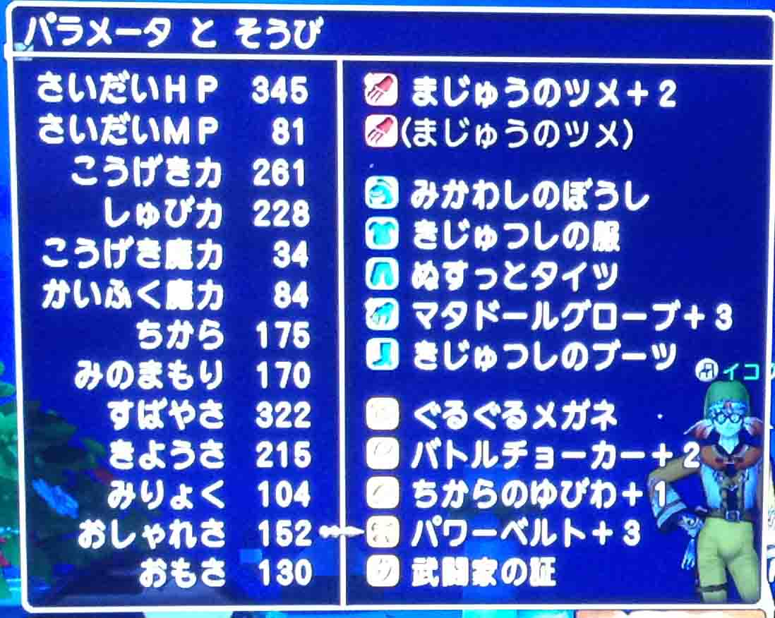 攻撃力261は武闘家62レベルとしては申し分のない能力でしょう。
