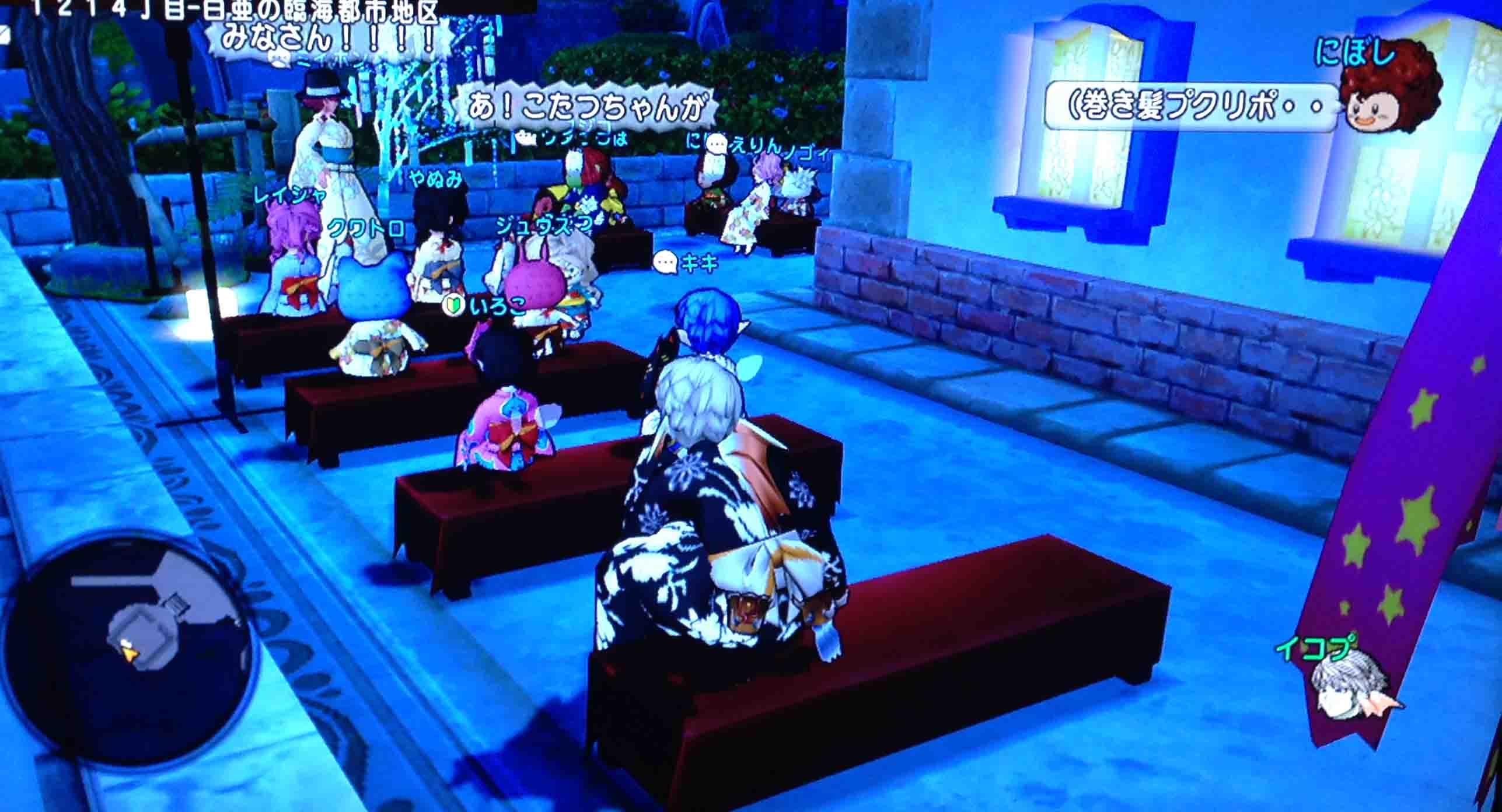 システムが理解できなかったのですがお客さんがワラワラと登場するとゲド店長が「◎☆さんついてー」みたいな指示が飛ぶようです。イコプさん緊張して一言も話さずカウンターで固まってました。そしたらどんどん仲間のホストが去っていきます。どうやら「指名」というシステムもあるみたいで、お客さんが「誰々お願い」みたいなこと言うとその人が席につくみたいでした。うっわー残酷これ鉄のメンタルいるよもうイコプさん限界誰も指名してくれなかったらこのままここでログアウトしようそして誰もいないときにこっそりログインして何事も無かっ
