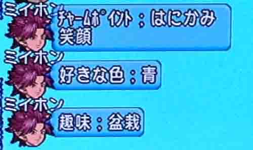 チャームポイントがはにかみ笑顔で青色が好きで盆栽が趣味のチーマーかあ。