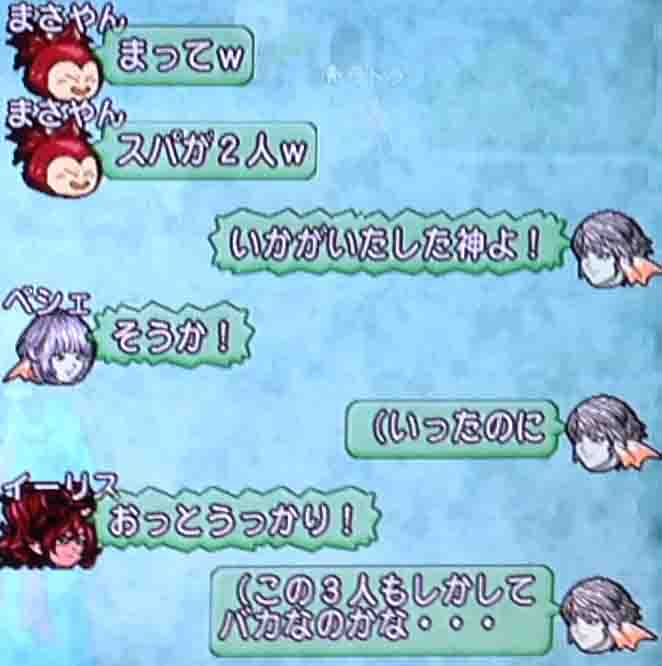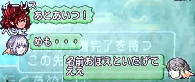私は瞬間「あれっなんでこの人こんなとこに呼び出しておいていきなり家に戻るのかなもしかして凄いバカなのかな」と邪な考えが脳裏をよぎったが、もちろんそれは口に出さないでおく。当然これはゲームなので画面の前でいきなりしゃべりだしたらかなりの末期の状態ですからねそれは口に出さないでキーボードで上記の旨を伝えることにしました。するとレオは「ツメスキルを全部短剣にふり直そうかと思ったけどぎりぎりで我慢した」ともうちょっと常人には理解できない発言だったので諦めて「とりあえずこーてん君くるまでオシャレしようメギストリス行こう」と伝える。