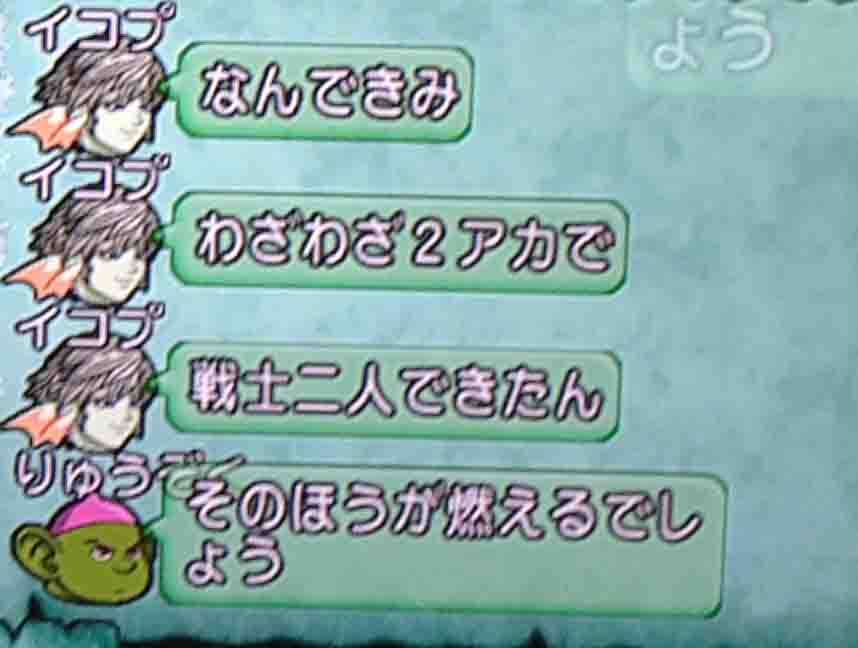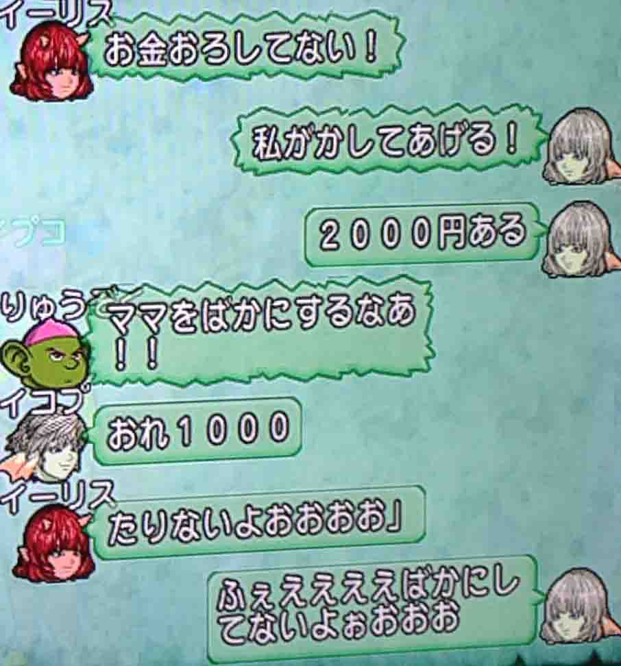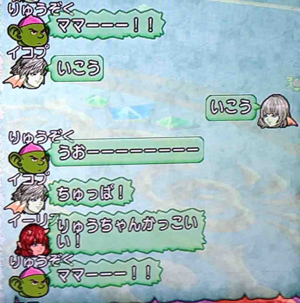 だんだん慣れてきてママと子供みたいなキャラ設定がイーリスの中で固まったようです。大人二人が午前3時にキーボード二個叩いてこのチャットしてるんだから凄いですよね。震えますよね。
