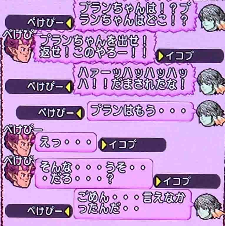 その日は確か24時ころまで、プラン、ぺけぴー、ゲドさんとドラクエを行っていました。プランが1%移動速度アップという靴を買ったとかでその効果を実験したいと言っており、プランとぺけぴーのかけっこを撮影するという係を仰せつかっていたのであります。この時点で「なんでそれイベントの5時間前にやるの」と凄く思ったのですが、プランのことだ深い考えがあるんだろうと思うわけなく「なんでそれイベントの5時間前にやるの」と聞いてみたところ「うおおーおー!」みたいな返事が帰ってきたのでまあいいやと思ったような記憶がありますが正直眠くて詳細には覚えていません。