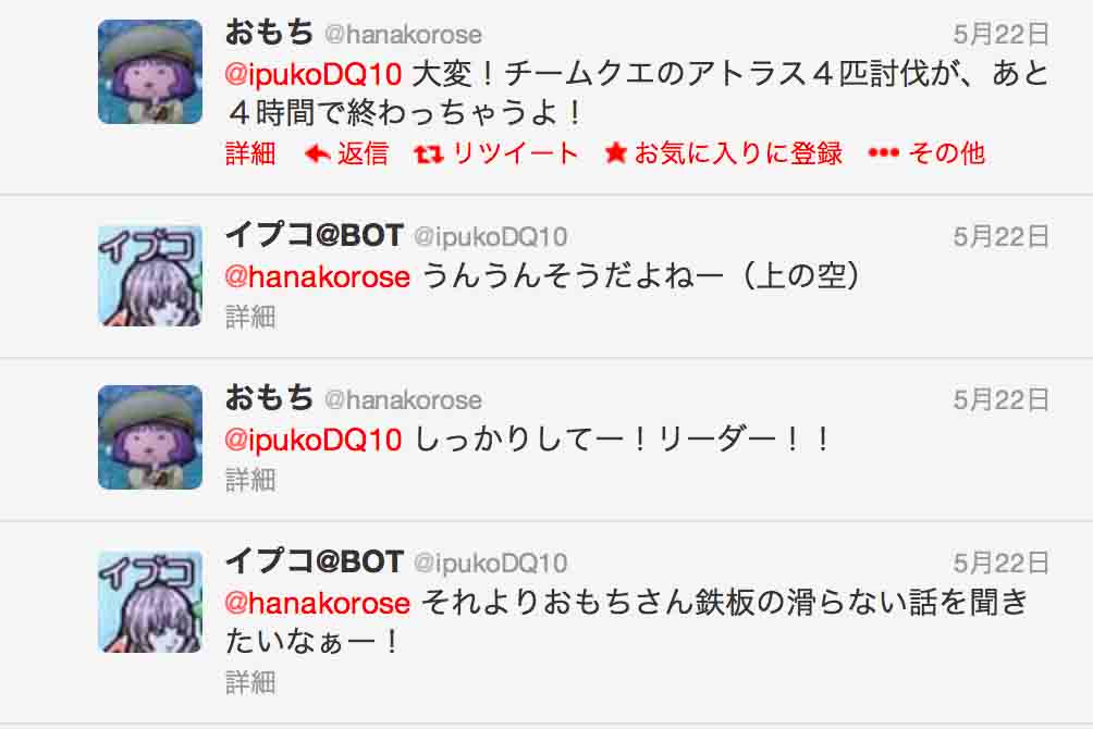 Twitterというアストルティアを離れた世界に、イプコは踏み出しました(BOTとして)