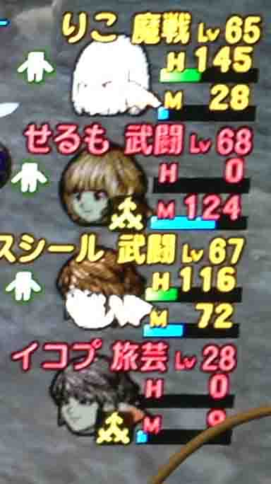 ザオ出来るのが自分だけというこの構成で、自分が2回の攻撃を受けたら終わり。