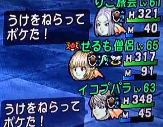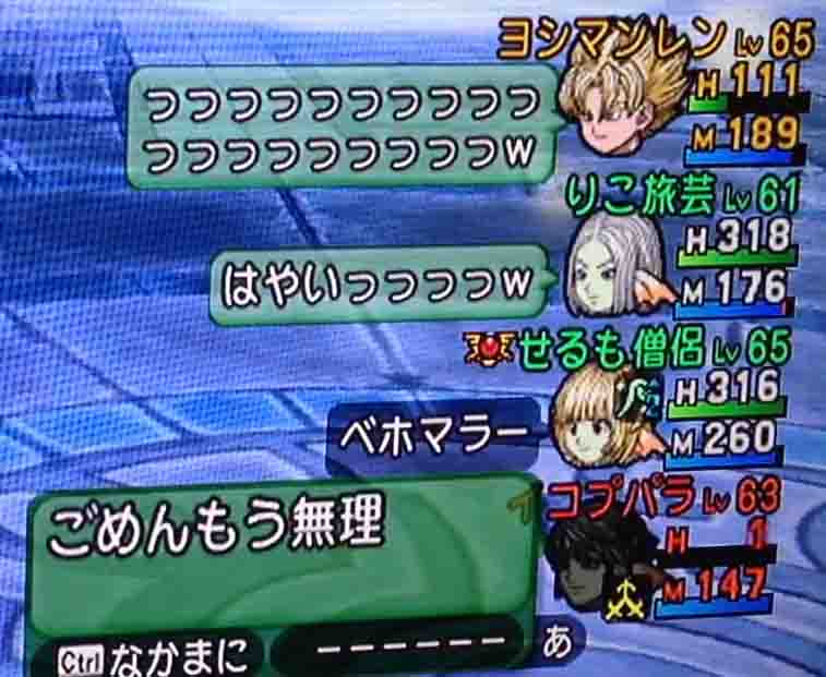 せるも氏はもう圧巻のPSです。ベホマラー連発してもMPが何故か減らないし、攻撃くる前に呪文詠唱始まってるし、ダメージを受けた時の赤い数字と一緒に青い回復の数字が出ているような感じでした。化け物ですね!おなじメイン僧侶として鼻が高いです。