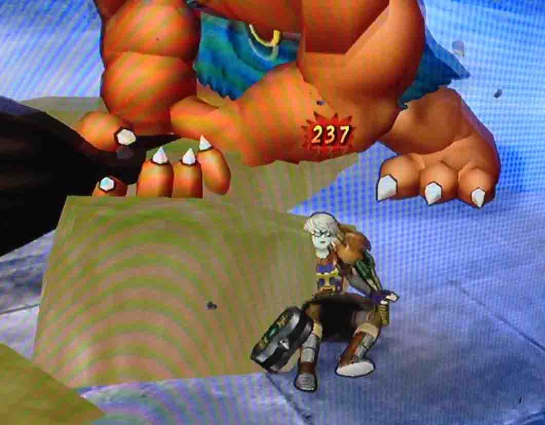 この攻撃は周囲への範囲攻撃でして、アトラスがその構えに入ったときに離れることで、攻撃を回避することができます。気をつければ回避出来ることですので、これを避けることはアトラス戦の基本となります。逆に回避できずダメージを受けてしまうと、転んでしまって行動不能になってしまい、とたんに危険な状況になります。