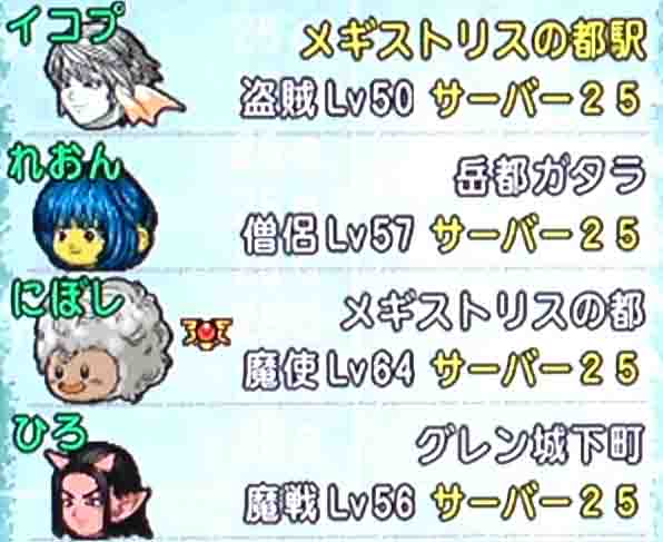 アタッカーとしてのにぼし、回復の心臓部れおん、レアドロ装備かつMPタンクのひろ、そして怪盗紳士イコプです。強力な魔法攻撃で敵を素早く殲滅し、万一の大ダメージにもメイン僧侶の回復が冴え渡る。無尽蔵に湧き出るMPタンクの魔法戦士を配置して、そして目的である眼鏡を盗む大盗賊イコプ。万全です。ただ途中で唯一俺が気づいたことは大盗賊が証も必殺も持っていないということでしたが、それはパーティのメンバーには静かに黙っておくことにしました。知らぬが仏という言葉は本当に含蓄深い趣ある言葉だと思います。