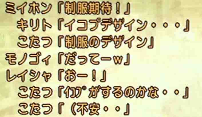 あまり私は詳しくないのですが、何となくこの職業の選び方は斬新な気がしますね?あまり見た事ないような気がしますがあの3人が選んだ構成なのだからまあ是がスタンダードなんでしょうね。コイン使う前に「適当でいいやろww」とか「レンジャーでいってみちゃう?wwww」「扇っっっっっww」とかそんな感じのチャットが聞こえてきましたが多くが関西弁だったので文意がうまくとれませんでした。