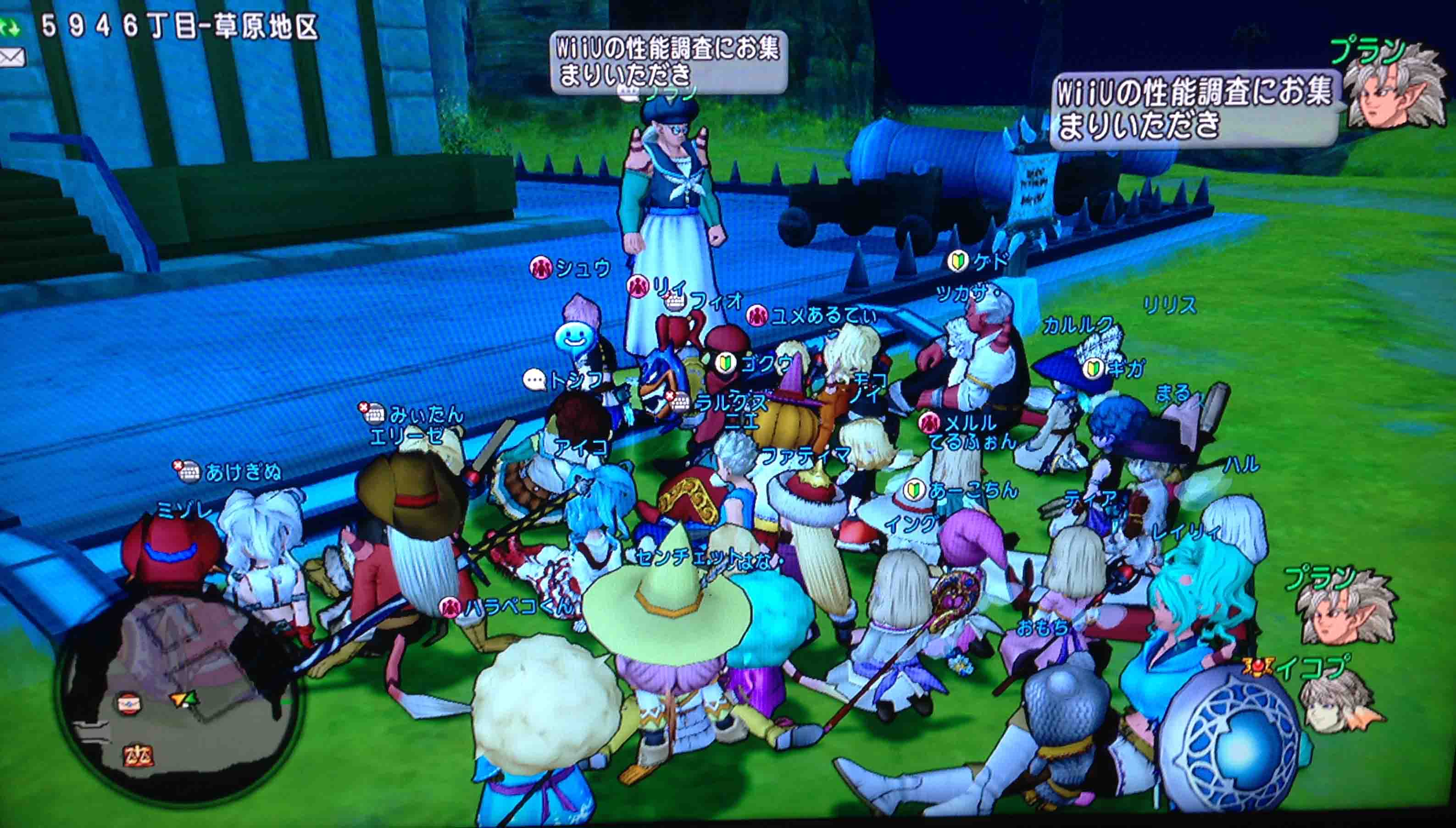 また、Wiiの場合は人が集まると「名前と砂時計のみ表示」されているという状況が多く、キャラクターが表示されるまで時間がかかる/or 表示されないという現象が多かったと思いますが、WiiUでは名前が表示されるかたはほぼ(全てではないが)キャラクターまで表示されます。そして、砂時計はほとんど認識できないくらいしか表示されませんでした。